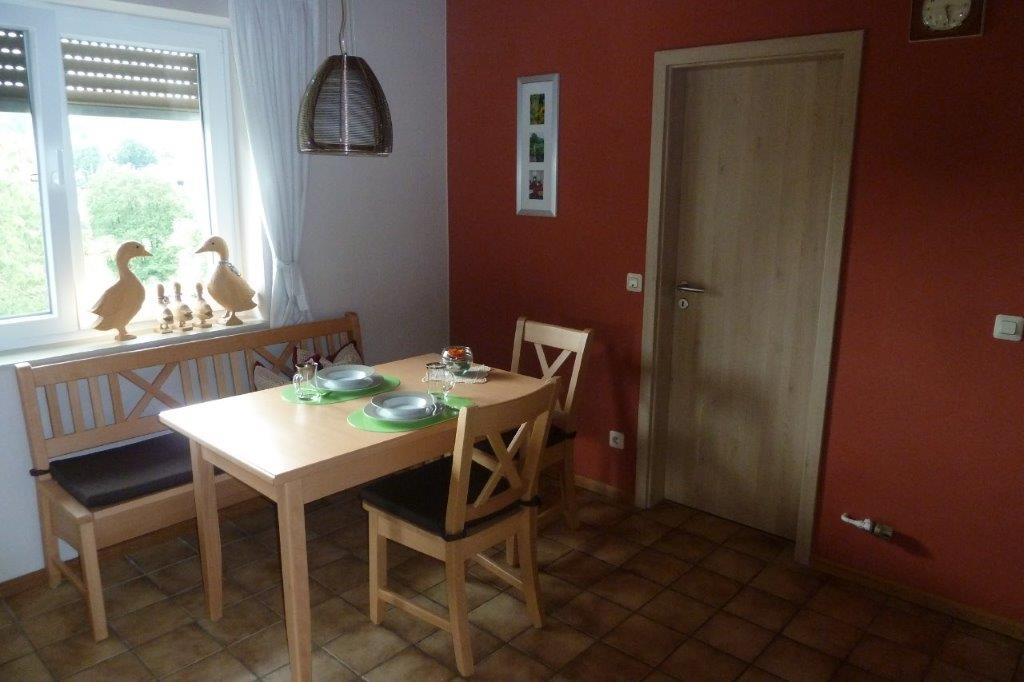 - Terrassenmöbel (Tisch, Sitzbank, Stühle mit Sitzauflagen)